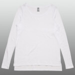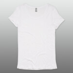 This quality fashion tee is made from a 50/50 mix of cotton and model to create a comfortable, light weight tee. The scoop neck and longer body length makes it a great 'dressy' option with a flattering silhouette.